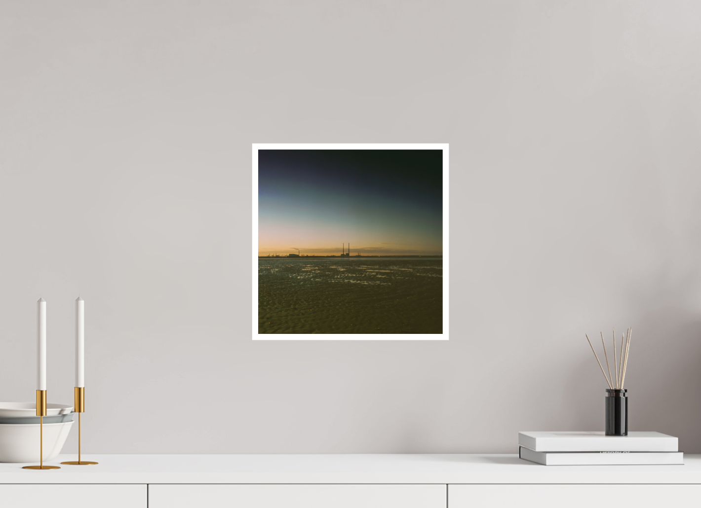 Captured on Fuji Velvia 50 medium format film in 2020, this image of Blackrock Strand embraces deliberate underexposure to enhance the moody atmosphere. The industrial silhouettes against the fading light create a contemplative study of Dublin Bay's changing landscape, while the textured water surface adds subtle movement to the composition. Printed on Hahnemuhle Photo Rag paper.
